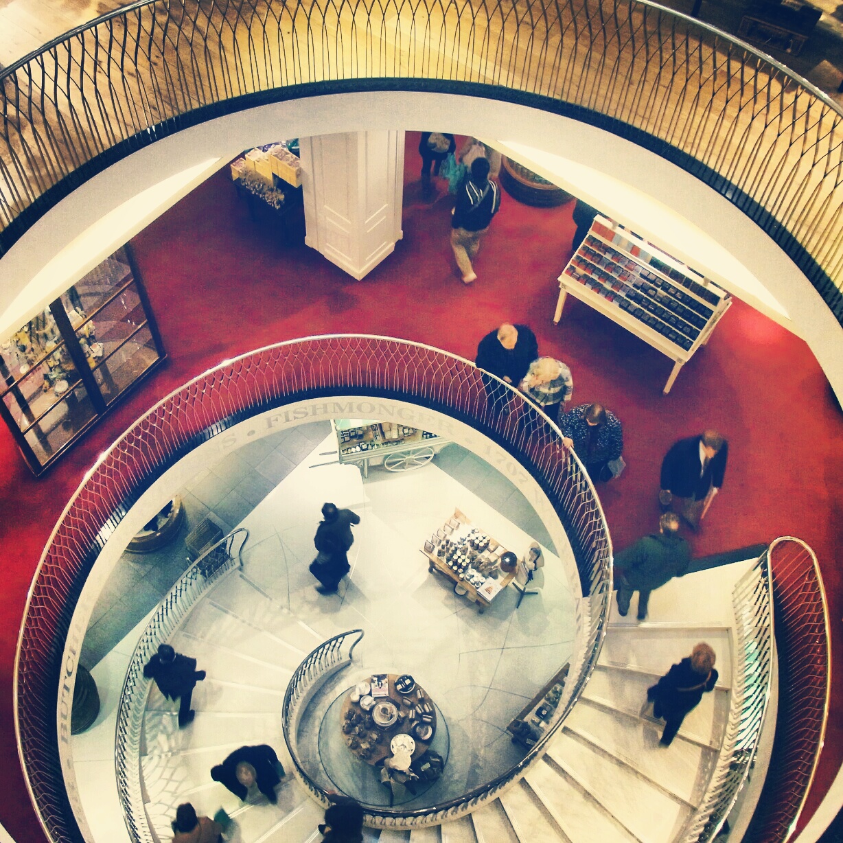 IMG_20130309_192159 Published March 10, 2013 at 1228 × 1228 in Photostream: London UK Holiday ← Previous Next → The central staircase in Fortnum and Mason