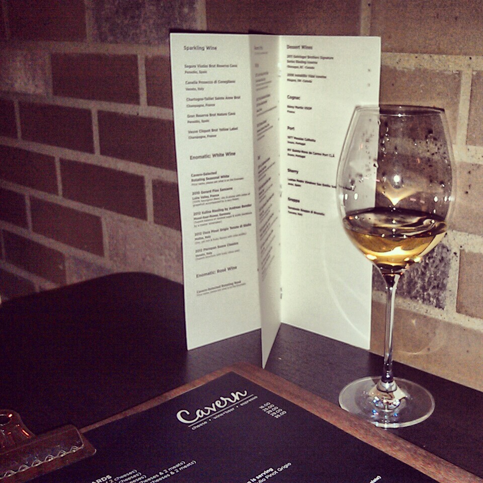 IMG_20140420_094843 Published May 7, 2014 at 960 × 960 in Edmonton Restaurant Review: The Cavern ← Previous Next → My glass of Riesling next to the wine list