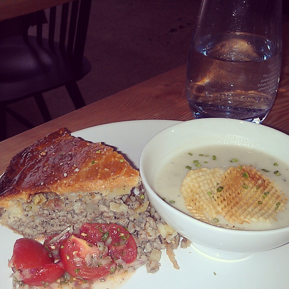 IMG_20140422_180742 Published June 8, 2014 at 920 × 920 in Edmonton Restaurant Review: Woodwork ← Previous Next → The pork pie and the cream of potato soup!