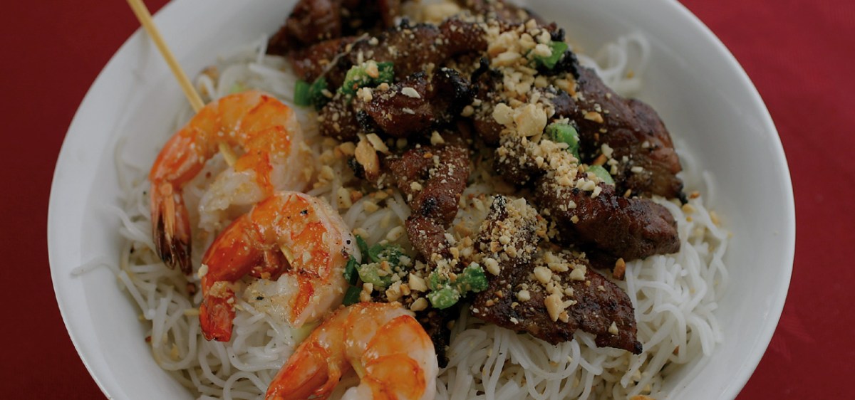 menu Published August 13, 2014 at 1280 × 600 in Edmonton Restaurant Review: Hoang Long Casual Fare ← Previous Next → A beef and shrimp vermicelli bowl. Photo Credit: Hoang Long website