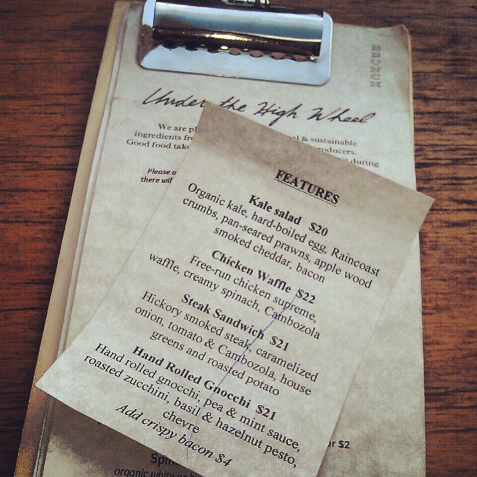 IMG_20140519_221155 Published August 24, 2014 at 960 × 960 in Edmonton Restaurant Review: Under the High Wheel ← Previous The feature menu.