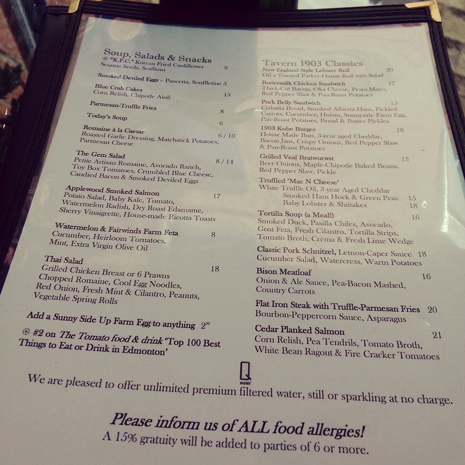 IMG_20141004_231527 Published November 9, 2014 at 1520 × 1520 in Edmonton Restaurant Review: Tavern 1903 (Closed) Next → The lunch menu at Tavern 1903.