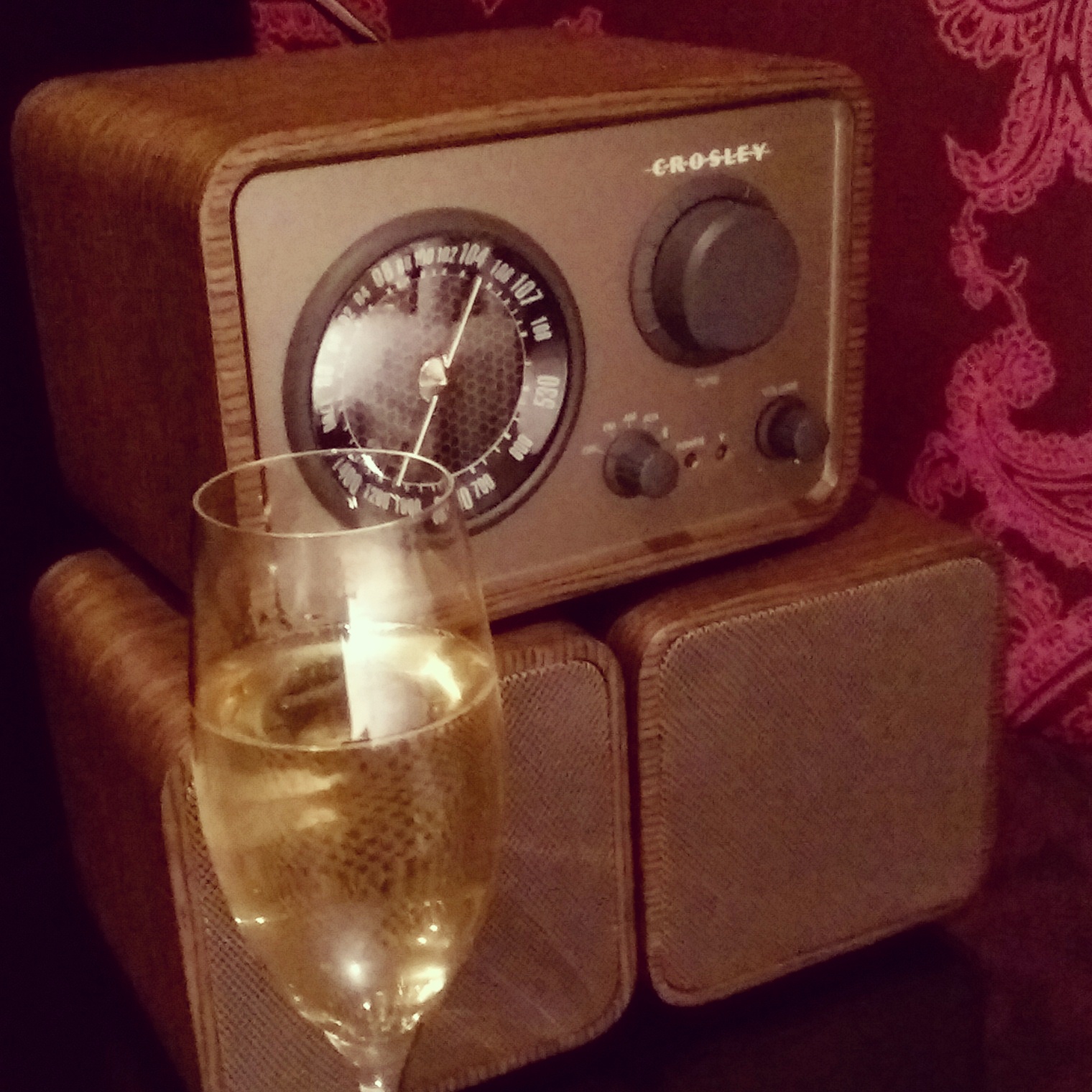 IMG_20141105_152710 Published November 16, 2014 at 1520 × 1520 in Vegas Revisited ← Previous Next → Retro radio in our room at The Cromwell with a complementary glass of Moet champagne.