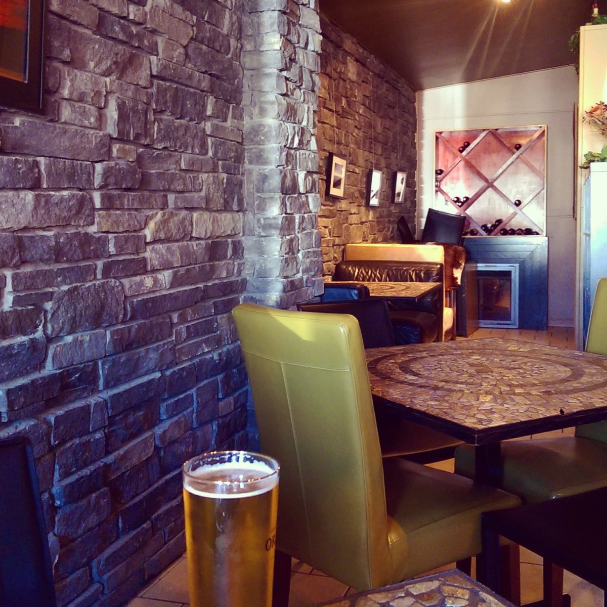 IMG_20141011_194329 Published December 3, 2014 at 1466 × 1466 in Edmonton Restaurant Review: Absolutely Edibles (Closed) ← Previous Next → Brick walls and mosaic tables give this place a chalet-like feel.