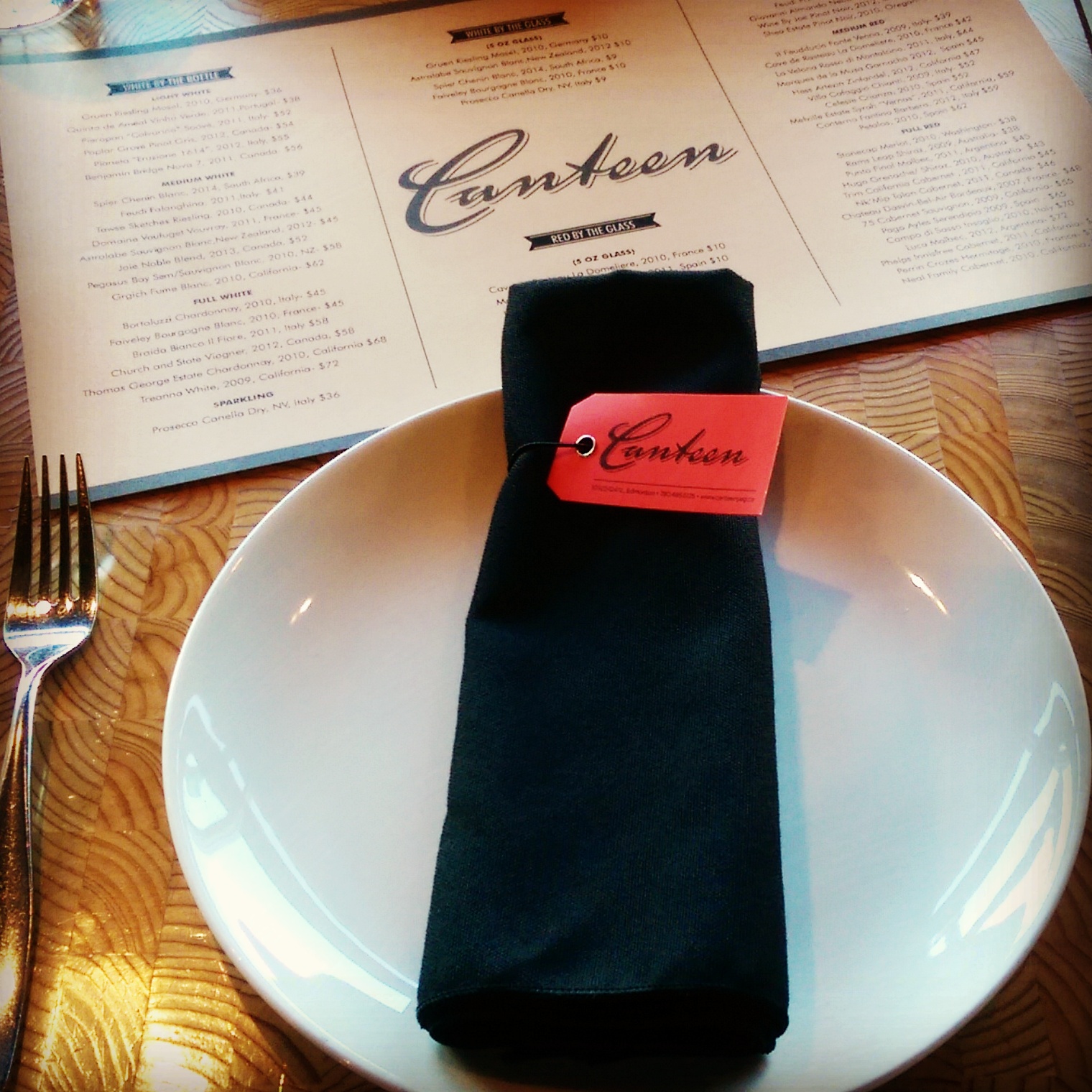 IMG_20141011_233826 Published December 11, 2014 at 1520 × 1520 in Edmonton Restaurant Review: Canteen Next → Table settings and the wine menu at Canteen.