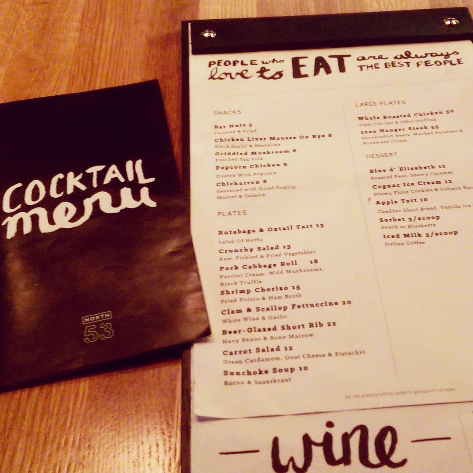 IMG_20141222_154746 Published December 30, 2014 at 1520 × 1520 in Edmonton Restaurant Review: North 53 (Closed) ← Previous Next → The new food menu, introduced November 2014.