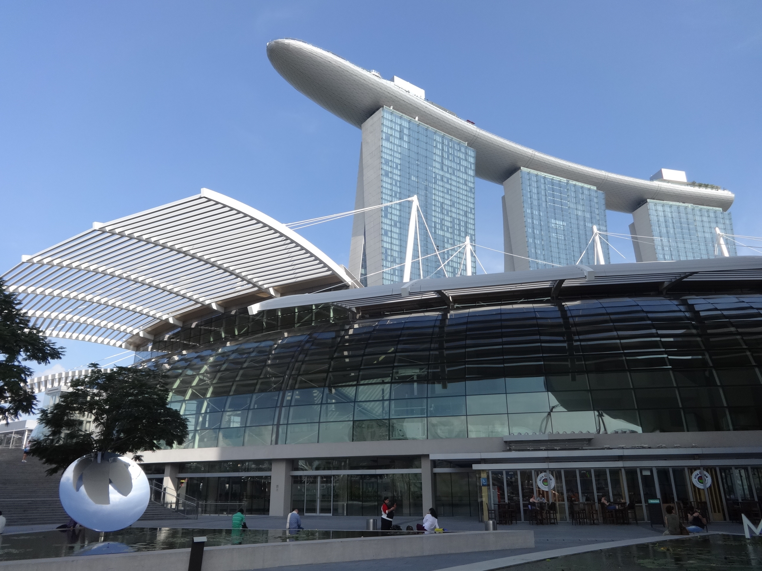 DSC02528 Published June 22, 2015 at 2592 × 1944 in Asian Adventures Photostream: Hong Kong & Singapore ← Previous Next → A view of Marina Bay Sands Hotel from outside the Shoppes