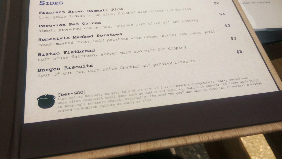 IMAG5798 Published August 9, 2015 at 2688 × 1520 in West Coast Wonder: Vancouver, A Weekend Getaway ← Previous Next → Lunch at Burgoo on Main Street.