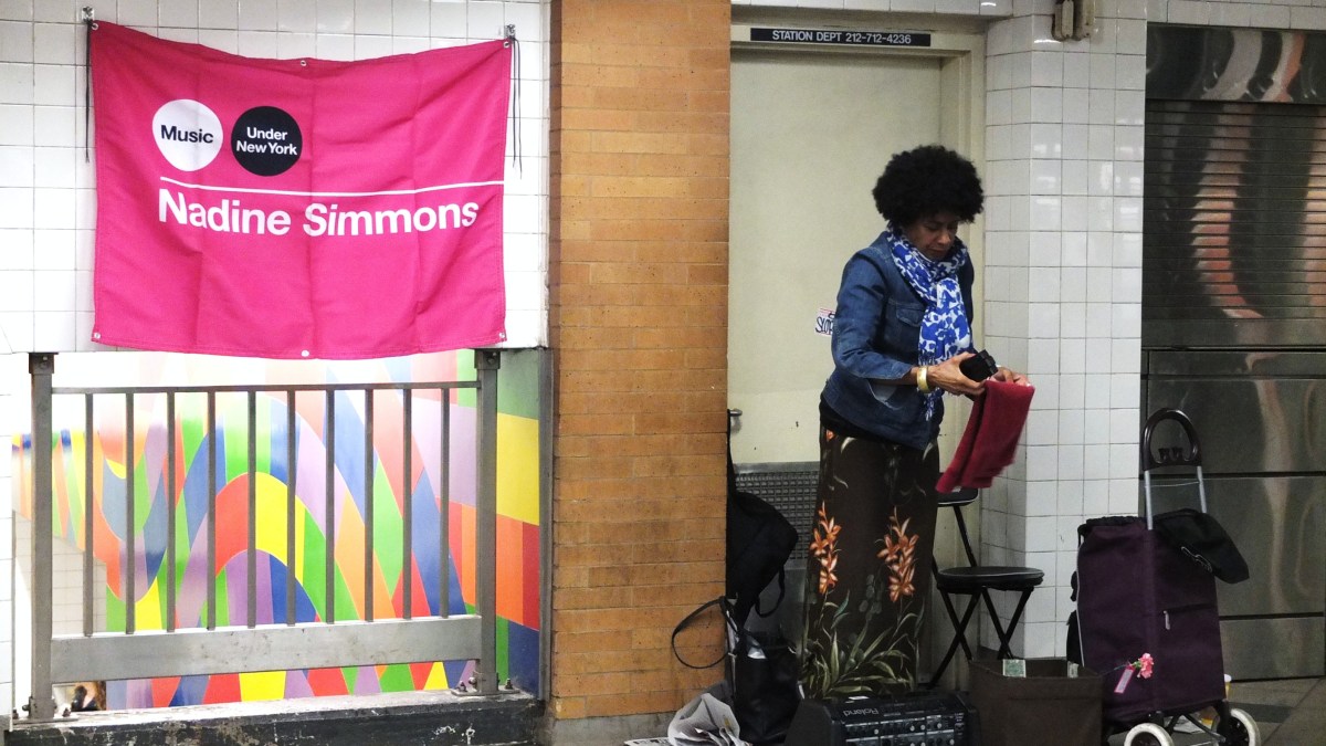 DSCF3564 Published October 19, 2015 at 2816 × 1584 in Continued Explorations: Autumn in NYC ← Previous Next → A subway performer packing up her things