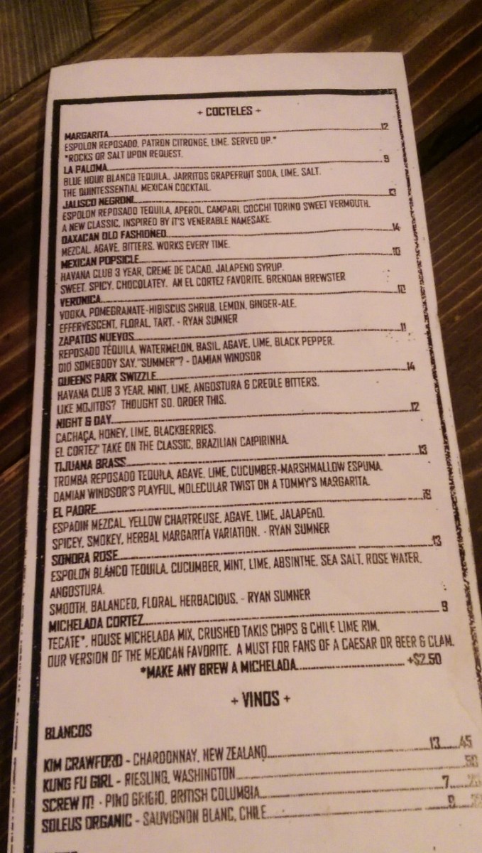 IMAG8305 – Copy Published November 13, 2015 at 760 × 1344 in Edmonton Restaurant Review: El Cortez Mexican Kitchen + Tequila Bar ← Previous Next → The drink menu.