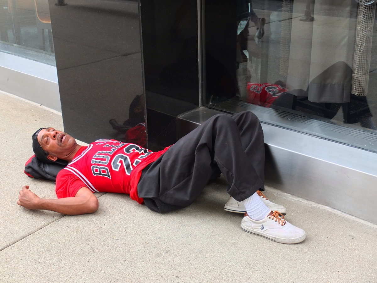 IMG_20160701_184622 Published July 2, 2016 at 1200 × 900 in Chasing the Chicago Skyline: Trip Recap & Gallery ← Previous Next → Just sleeping on the street. No big deal.
