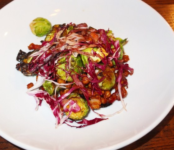 We selected the Roasted Beet & Greek Yogurt salad, Alberta Beef Short Rib, Brussels ‘n Bacon and the Crash Burger. The majority of the dishes are made to be shared among the group, tapas style. The latter is most ideal for an individual meal, but it’s easy enough to divide that into halves (I’m not sure it’s the best if it needs to be allocated between more than two people). It’s important to note that plates are brought out as they’re ready. That means nothing is sitting for too long in the kitchen; it certainly makes for a compelling argument to share the food, ensuring no one at the table feels left out while others may already be eating.