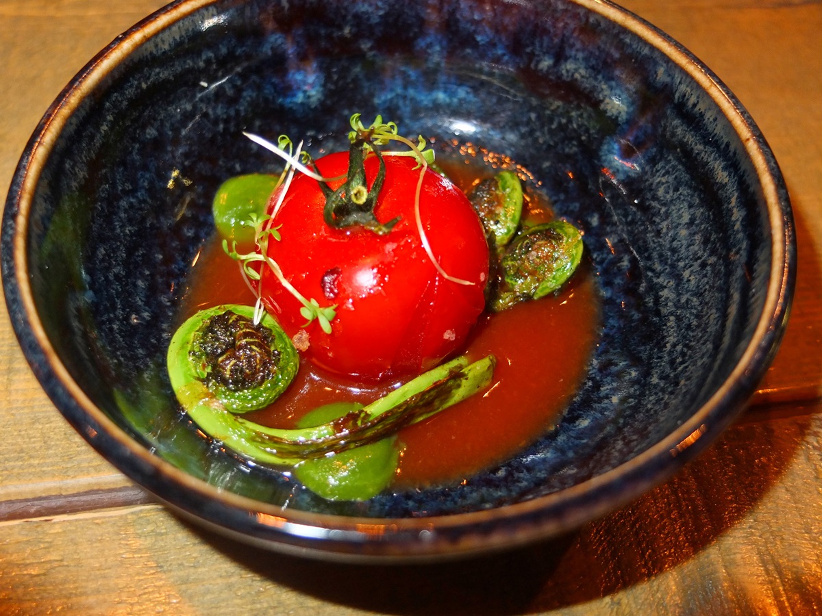 IMG_20170508_220625_654 Published May 10, 2017 at 1200 × 900 in Edmonton Restaurant Review: RGE RD Next → Course 1: Tomato with Fiddleheads