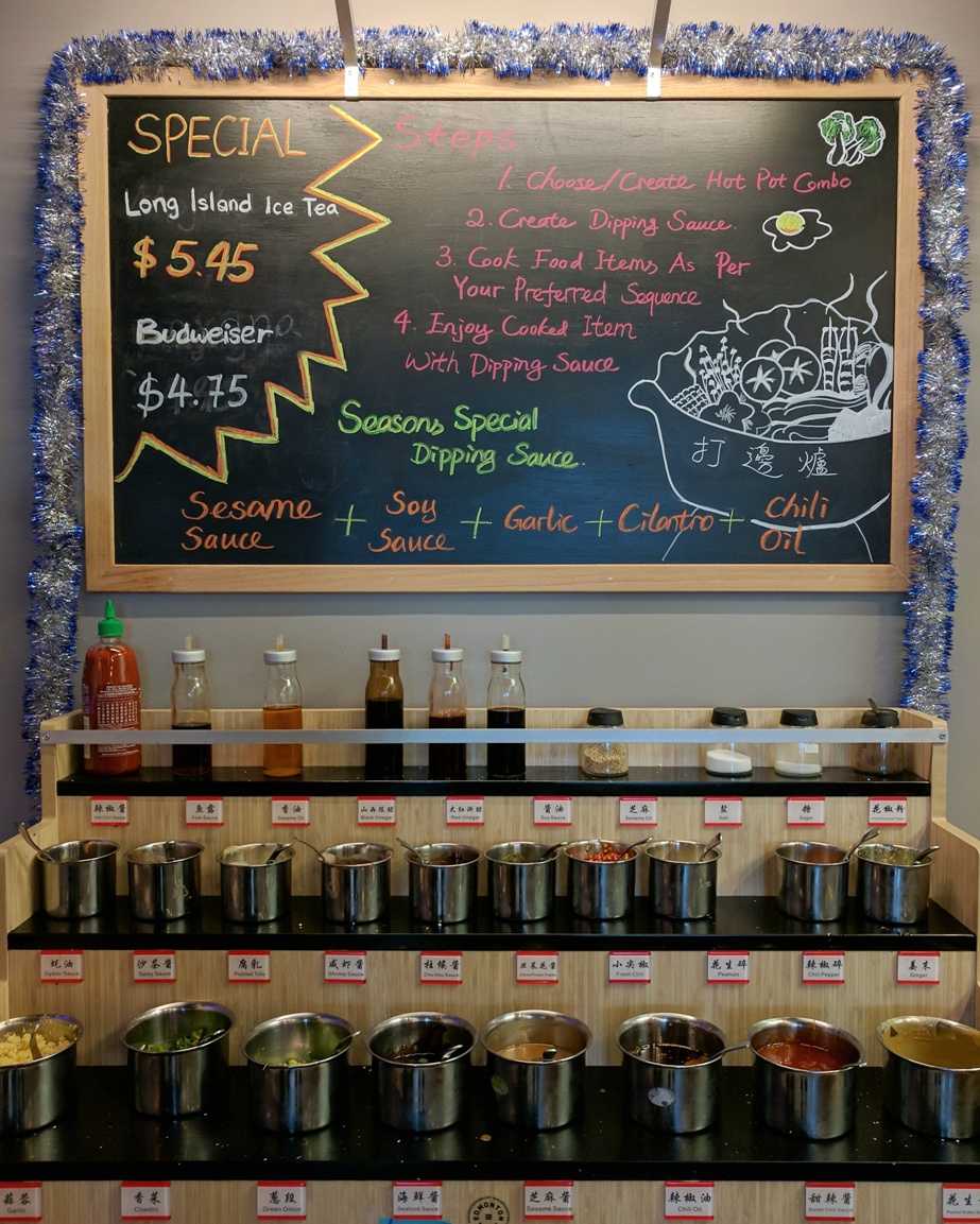 IMG_20180107_115707_083 Published January 20, 2018 at 923 × 1153 in Edmonton Restaurant Review: Seasons Hot Pot (Closed) ← Previous Next → I think every kind of sauce or condiment one would want is here.
