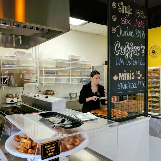 Opened by a father-daughter duo who saw the potential in the growing food trend, Destination Doughnuts‘ storefront resides in the equally fashionable pocket of 124 Street in Edmonton. Unlike most businesses in the neighbourhood, the shop on 105 Avenue has several free parking spots in the building’s front lot, making it prime real estate.