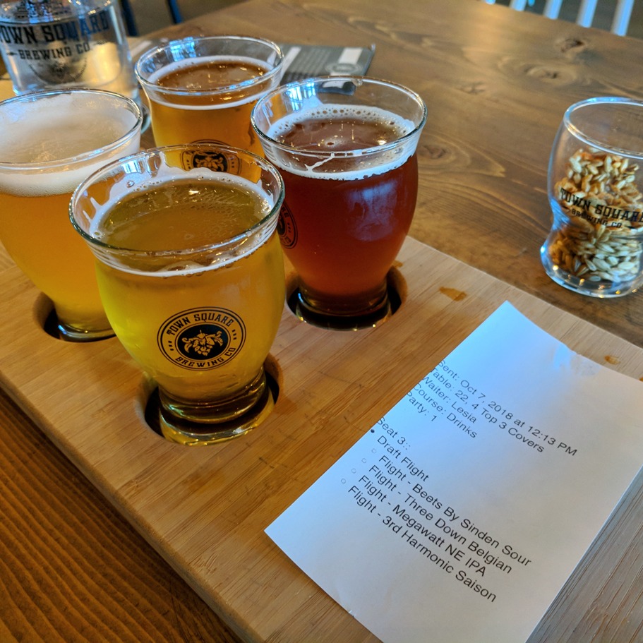 IMG_20181029_231403_794 Published November 3, 2018 at 911 × 911 in Edmonton Restaurant Review: Town Square Brewing ← Previous Next → A shared flight of beer with our selections from the current draughts on tap.