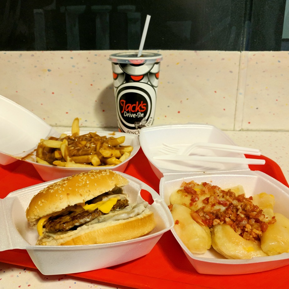 IMG_20181213_213100_968 Published December 14, 2018 at 923 × 923 in Edmonton Restaurant Review: Jack’s Drive-In (Spruce Grove) ← Previous Next → My burger with our two sides and my root beer.