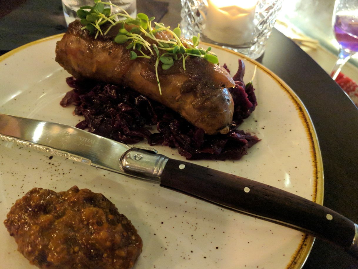 IMG_20181215_094646_703 Published December 17, 2018 at 1218 × 914 in Edmonton Restaurant Review: Partake ← Previous Next → Sausage with braised cabbage and mostarda.
