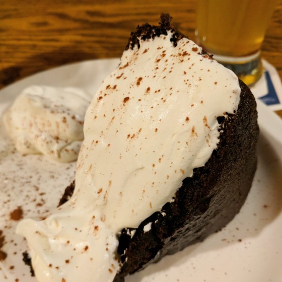 To complete our meal, we had the featured Guinness Cake ($8) for dessert. It took a while for it to come out. Apparently, they were out of whipped cream, so they made a whole new batch just for us. The cake was dense, but far from sweet. It just had that dark chocolate flavour without all the sugar. Quite good, actually.