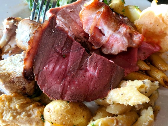 Last, but not least, was the beef rumpsteak. The slice I received was just a tad dry (shredding apart in the mouth) even though it looked to be cooked perfectly and had a nice colouring to it. It was also very minimally seasoned, making it kind of bland.