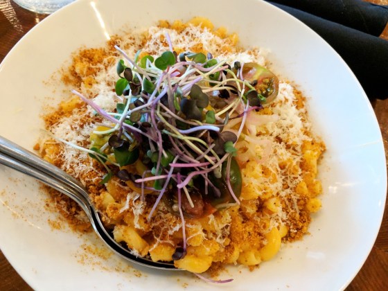 One of my friends ordered the Mac & Cheese ($19). It’s described as a combination of cheddar sauce, pickled baby jem tomato salad, shallots, “bacon” breadcrumbs, and aged cashew parmesan. Maybe it was creamier as soon as it was dropped off at the table, but when I sampled it, I didn’t find it had a great texture on the pasta and I didn’t think it was cheesy enough. The “bacon” breadcrumbs were a nice addition though. I also made sure to try a pickled baby jem tomato. It was plump and juicy, but surprisingly spicy. For a second, I thought maybe it was a chili pepper disguised as a tomato. My guess is that they pickled it in spiced brine as that’s the only explanation for the heat. Anyway, it was an interesting take on mac and cheese that I’m not super keen to go back for.