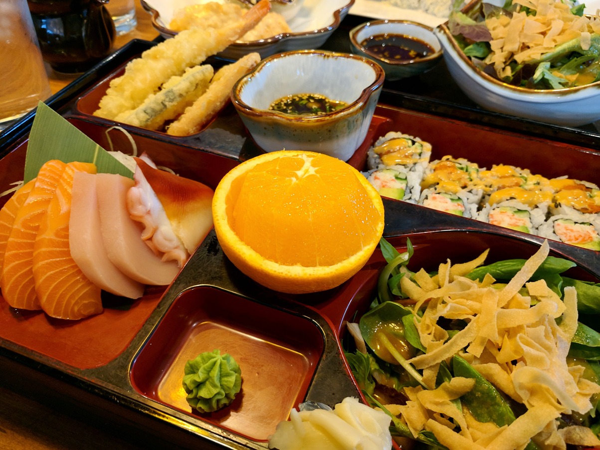 IMG_20190525_130148_098 Published May 25, 2019 at 1203 × 902 in Edmonton Restaurant Review: Washoku Bistro ← Previous Next → Lunch Sashimi and Roll Bento Box