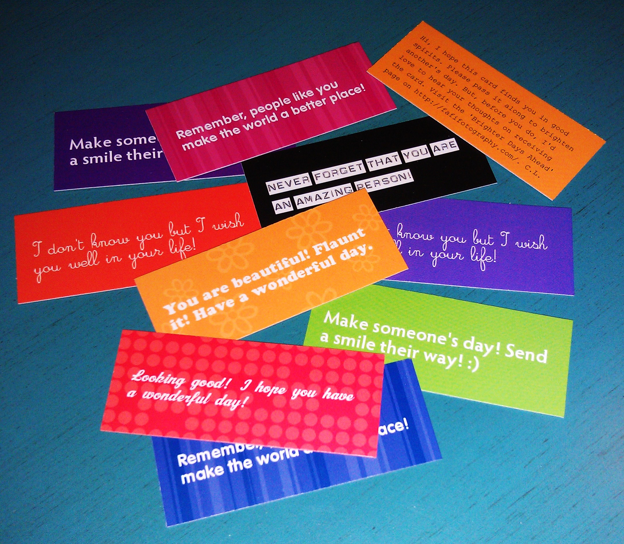 Positivity Cards Published November 30, 2012 at 2174 × 1894 in Brighter Days Ahead Next → Brighten someone’s day and then pay it forward! Like Loading...