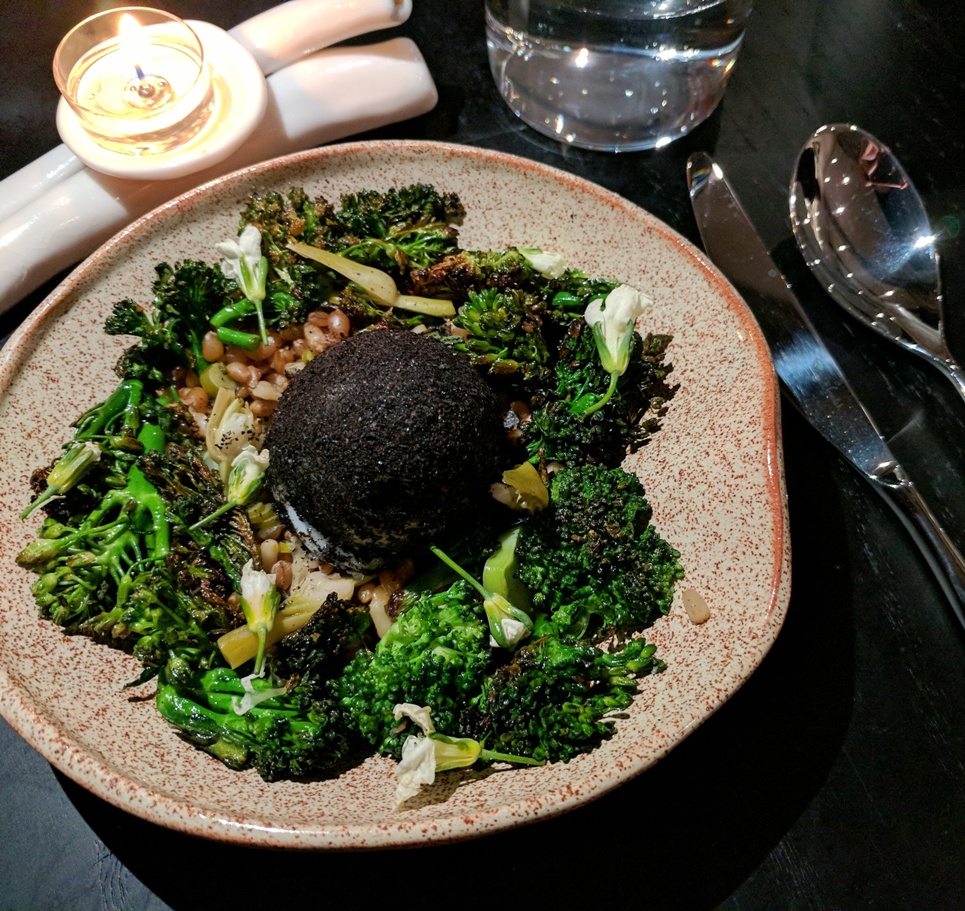 IMG_20170923_121756_321 Published September 23, 2017 at 965 × 911 Broccoli with a Leek Ash covered Duck Egg at The Butternut Tree.
