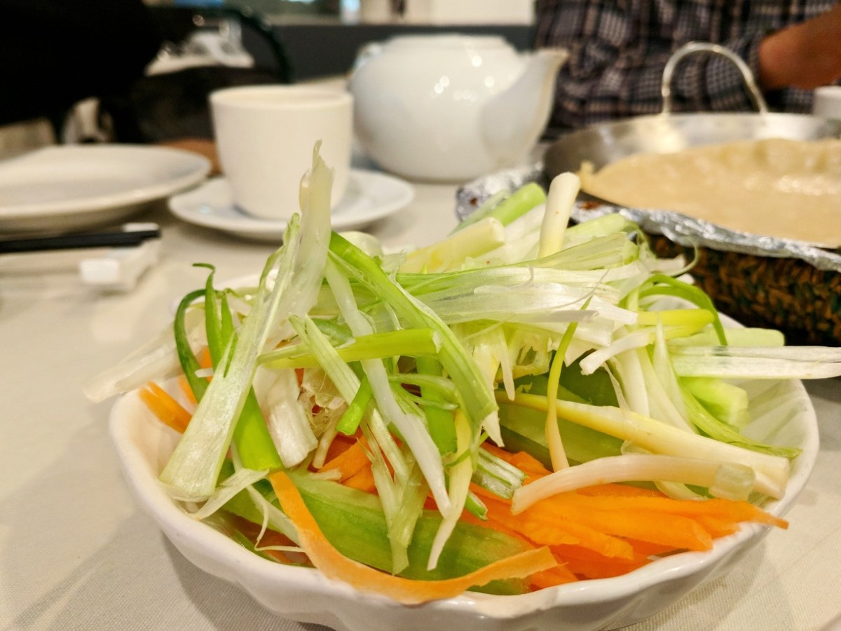 Garnishes for the Peking duck wraps.