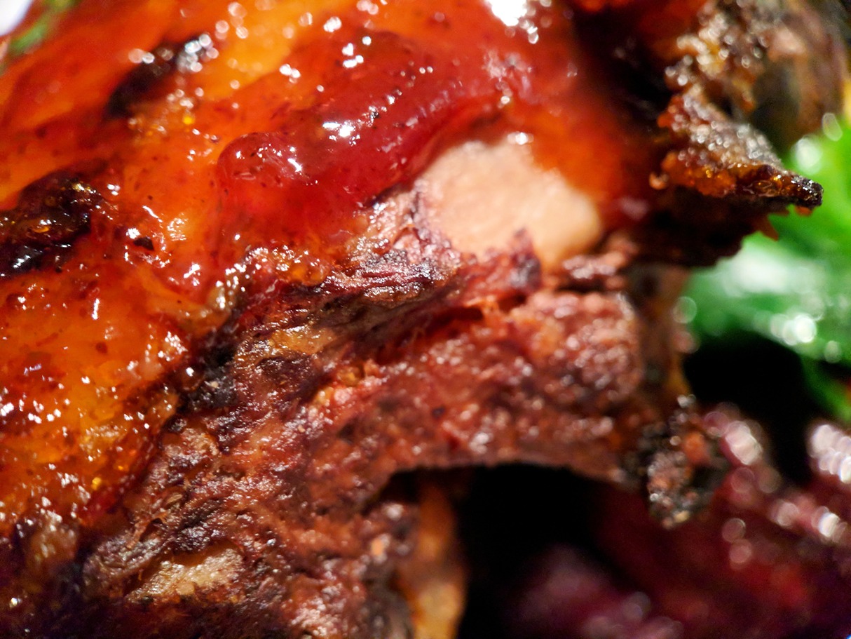 A close-up of the smoked meat.