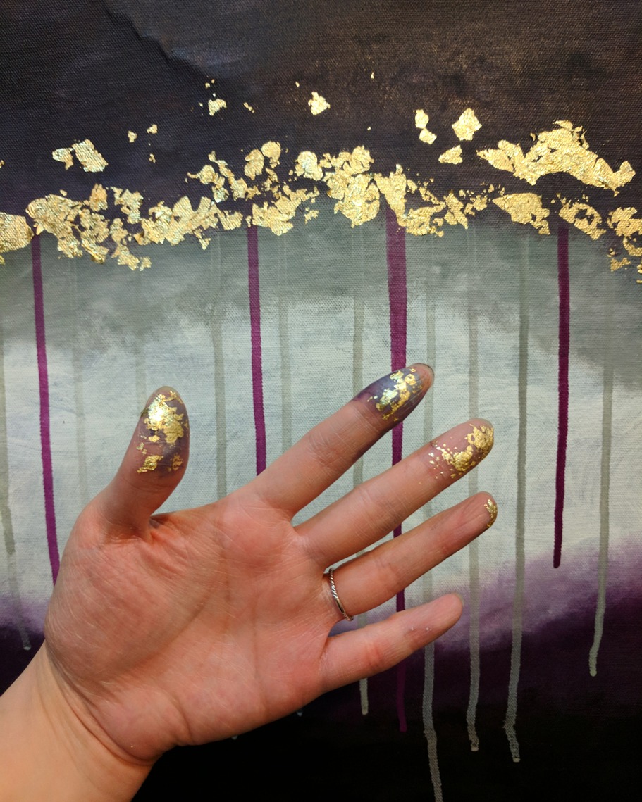 My hands covered in paint and foil.