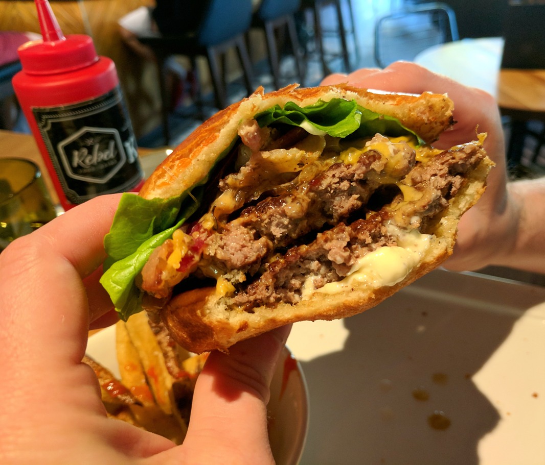 IMG_20180603_144412_598 Published June 3, 2018 at 1066 × 911 Their burger comes with double-stacked patties.