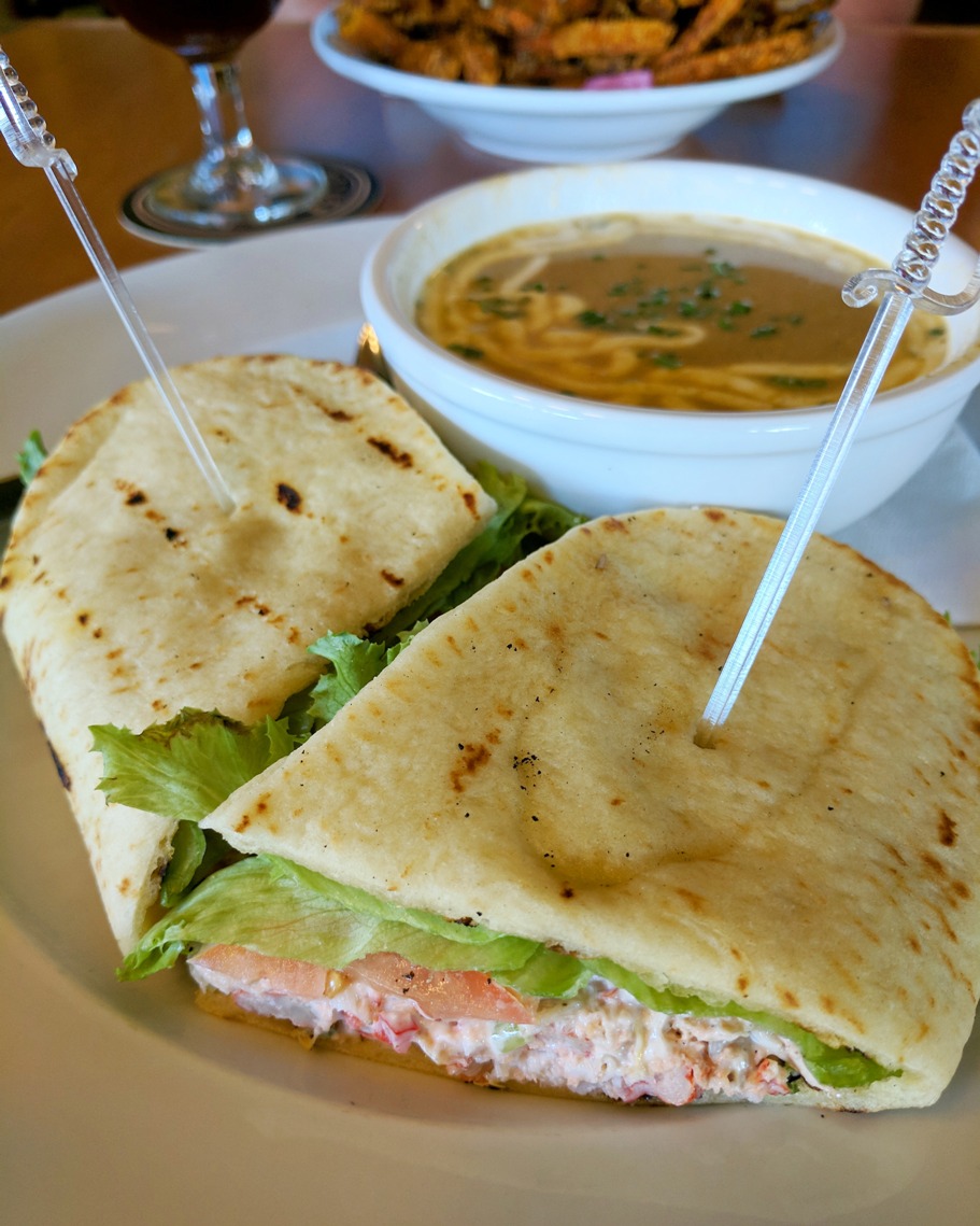 IMG_20180714_085730_952 Published July 14, 2018 at 911 × 1139 The lobster sandwich special with lobster bisque at Red Shoe Pub.