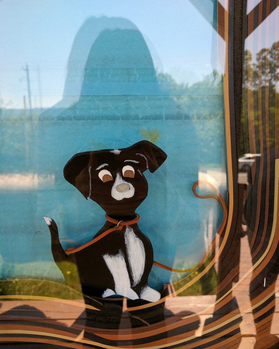 IMG_20180714_093821_627 Published July 14, 2018 at 894 × 1118 A window display made of leather scraps at Leather Works by Jolene.