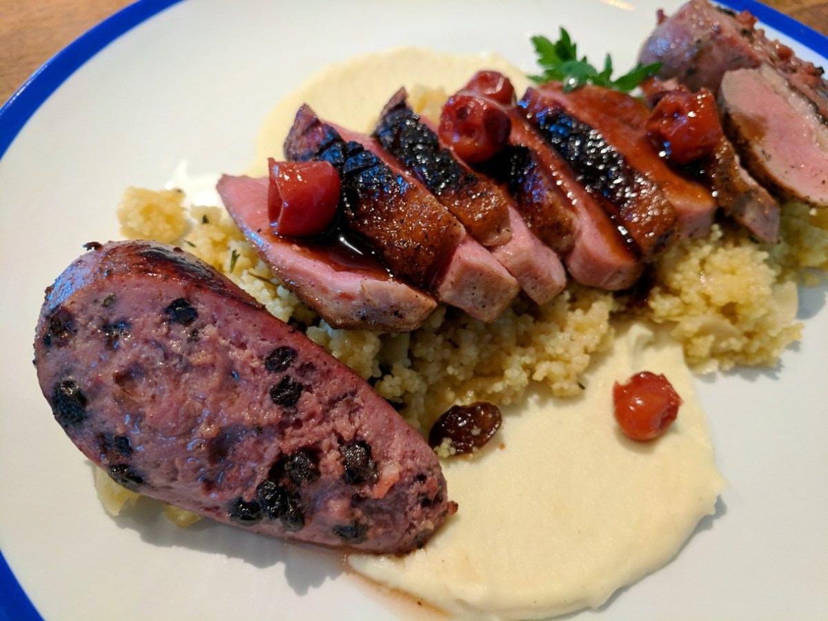IMG_20190427_115603_265 Published April 27, 2019 at 1214 × 911 Duck Duck Couscous makes duck breast and sausage the stars of the show.