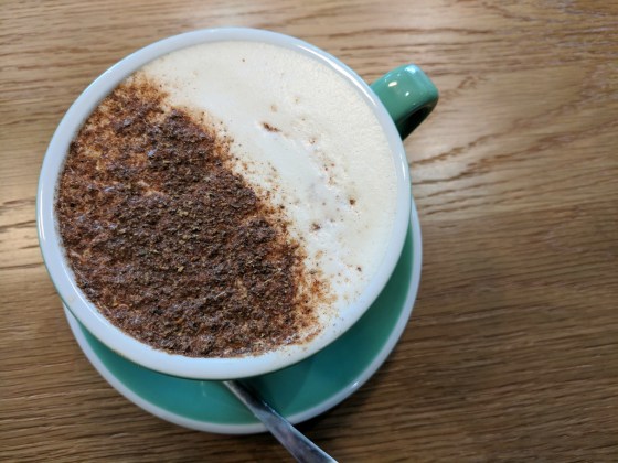 When we arrived mid-afternoon, it was quiet. Only one other customer was hanging out at the coffee bar chatting with the staff member who greeted us as we walked up to the counter. Cafe Lavi sticks to a small menu with more basic drinks: espresso, macchiato, americano, cappucino, flat white, latte, mocha, and cold brew. For tea-based beverages, they offer chai latte, london fog, and matcha latte. Drinks start at $3.25 and go up to $6.50, although I should note that the listed prices already include tax. Almond, coconut, and soy milk substitutes are available for an extra charge of 50 cents. They also had a few baked goods that looked quite delicious, but I wasn’t a fan of the fact that they were left uncovered at all times.
