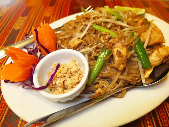 My friend’s plate looked nice with a dome-shaped portion of rice, two large pieces of grilled chicken and a side of julienned veggies. The server had dropped off a couple of sauce bottles along with our food, but neither was soy, so my dining companion had to track her down for that. Other than that minor hiccup, my friend enjoyed the meal.