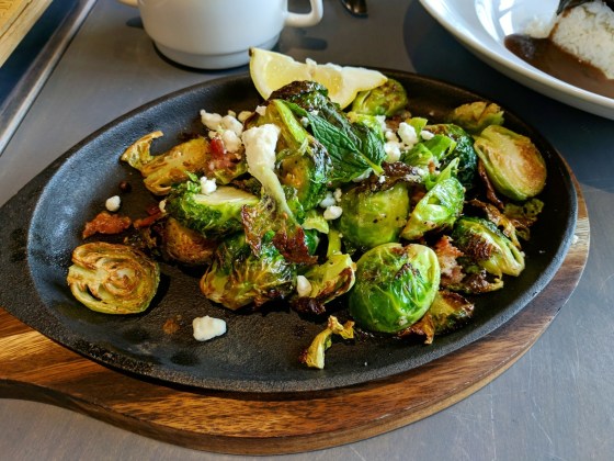 To eat, we shared a few happy hour plates (all up to fifty per cent off) including four Meatballs ($0.97 each), four Sliders ($2.50 each), and Bruschetta ($5). Additionally, I wanted to try their Brussels Sprouts ($9), and Gnudi ($16) for some variety. The food was prepared quickly and, before we knew it, dishes were being presented at our table.
