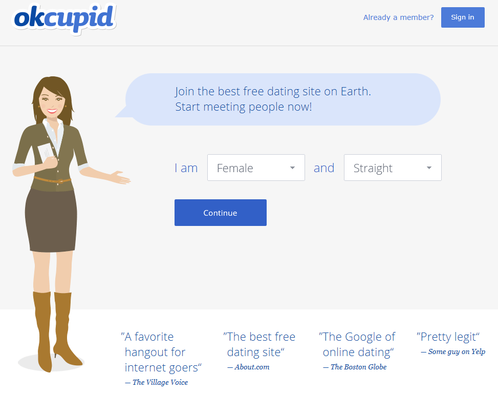 A friend of a friend told me that she met her boyfriend on OkCupid and that she had the best results on this site, so, naturally, I went home and signed up for it right away.
