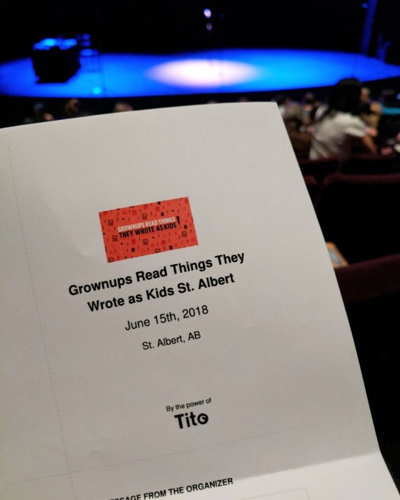 About two weeks ago, I dragged my fiancé to the latest Grownups Read Things They Wrote as Kids (GRTTWaK) event in St. Albert. It was the second one I’d attended. The first was two years before at The Mercury Room in Edmonton. I was, and still am, just a listener though. I’m not sure I’m brave enough to get so personal with a room full of strangers.